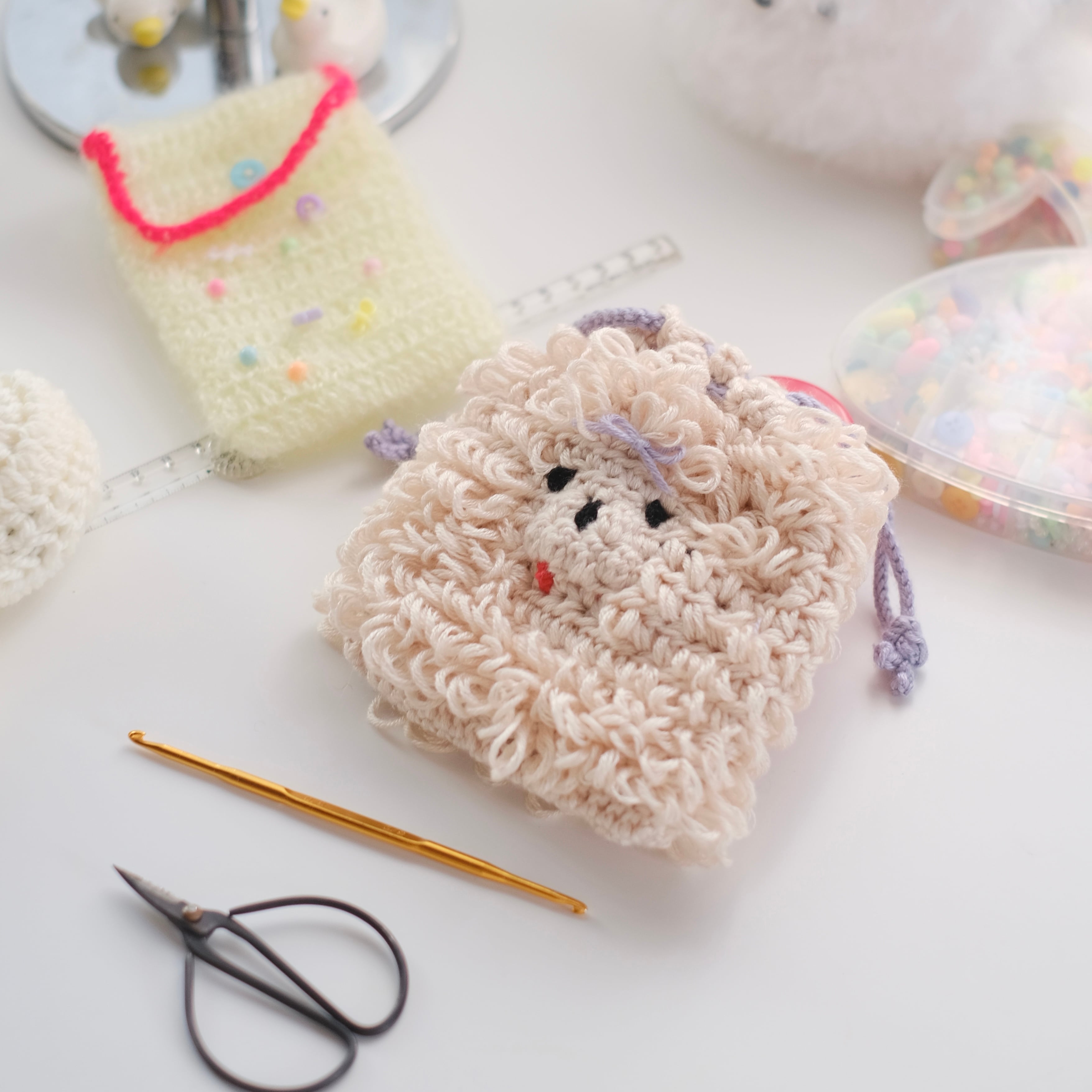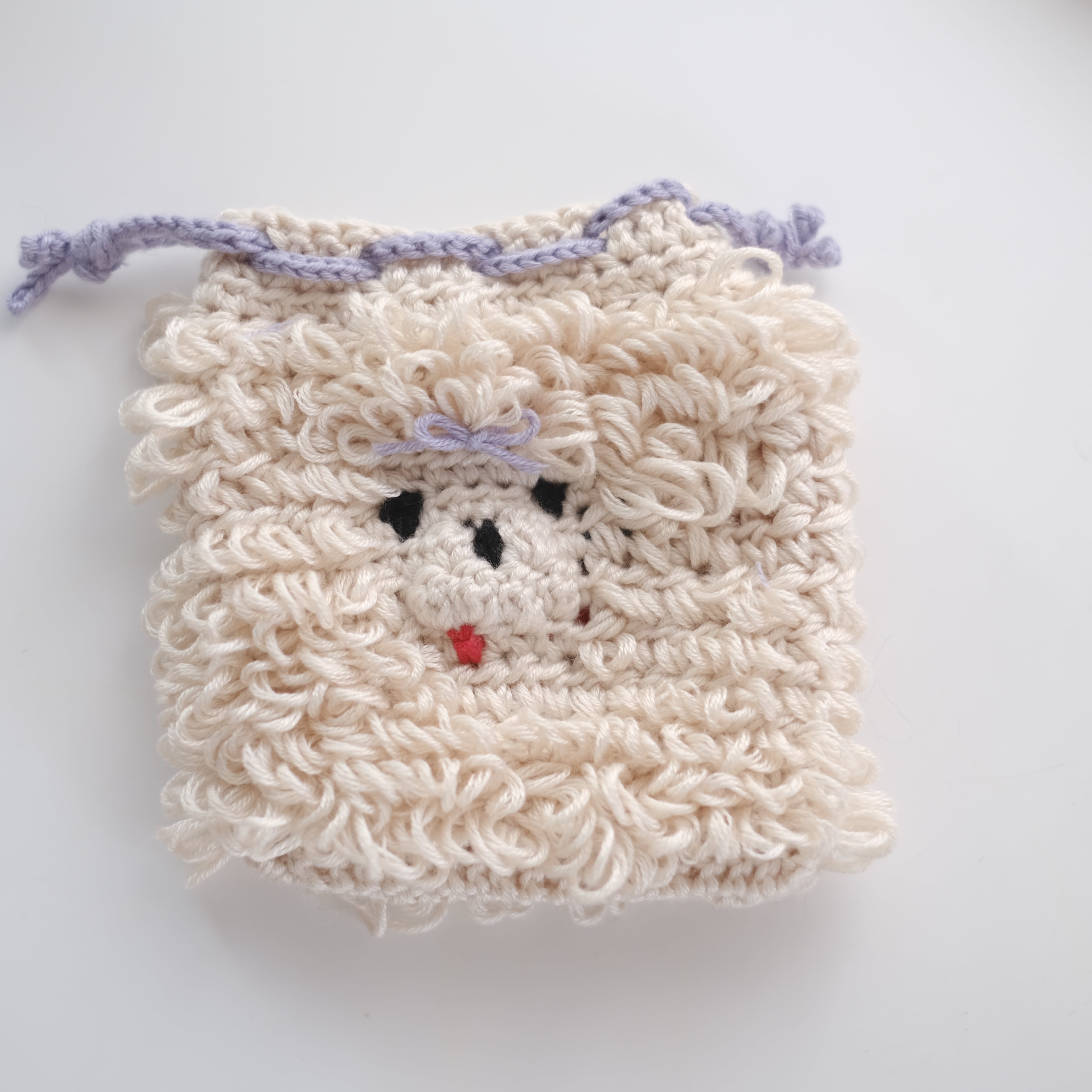リボンをつけたわんちゃんの巾着ポーチです♩